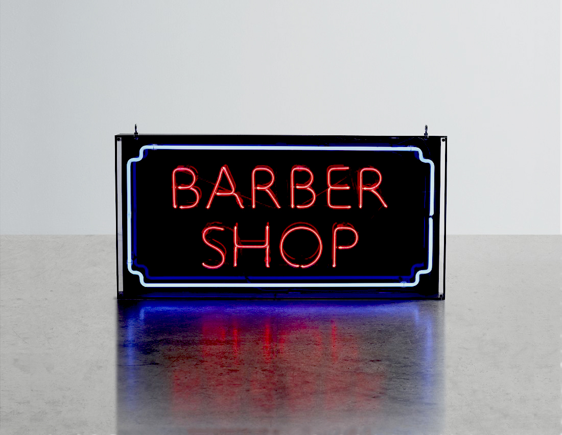 Barber shop neon mounted within an acrylic case