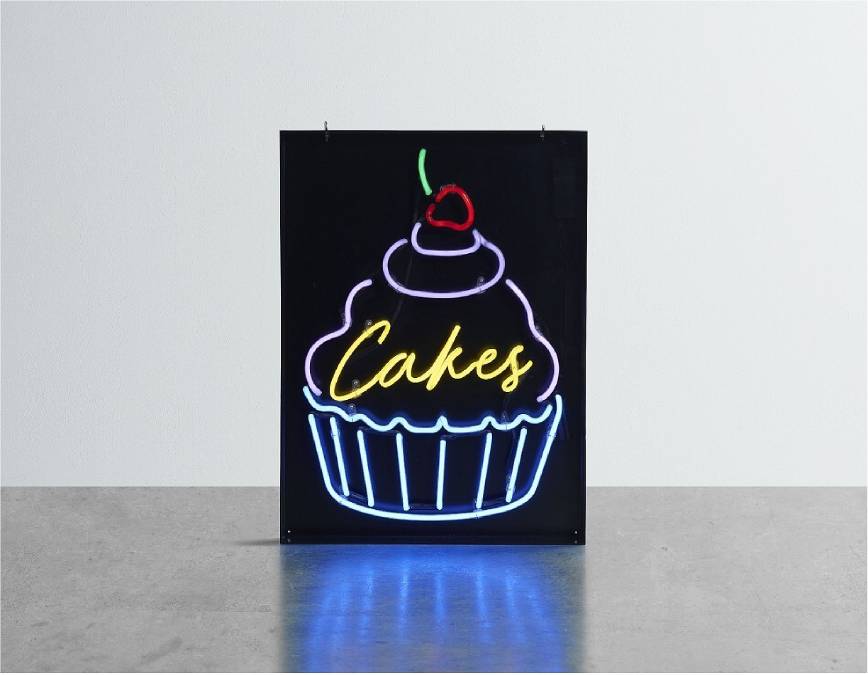 Exposed neon mounted within a black aluminium backing tray