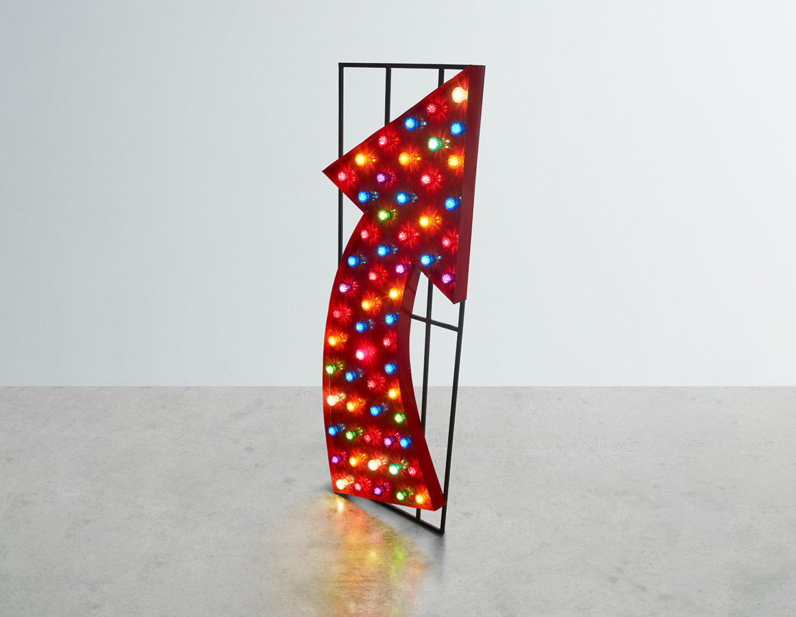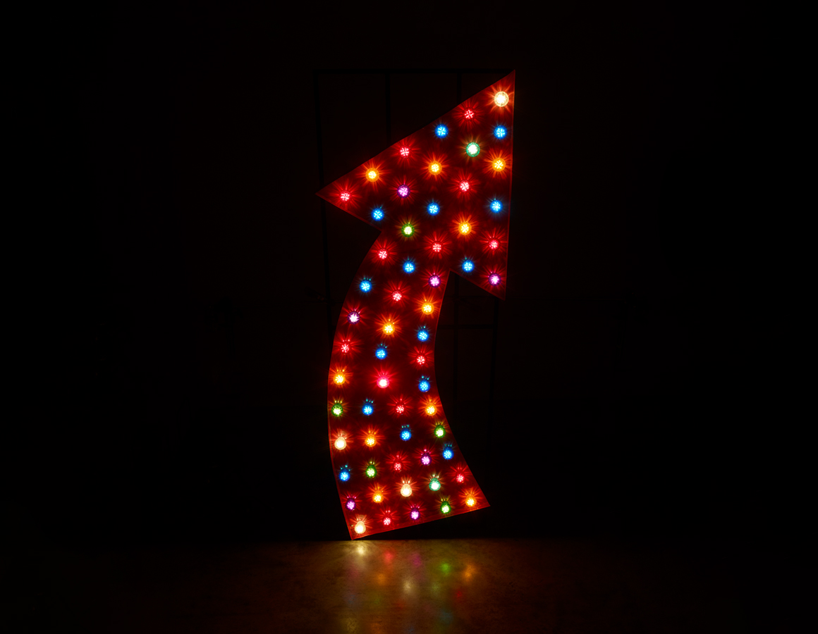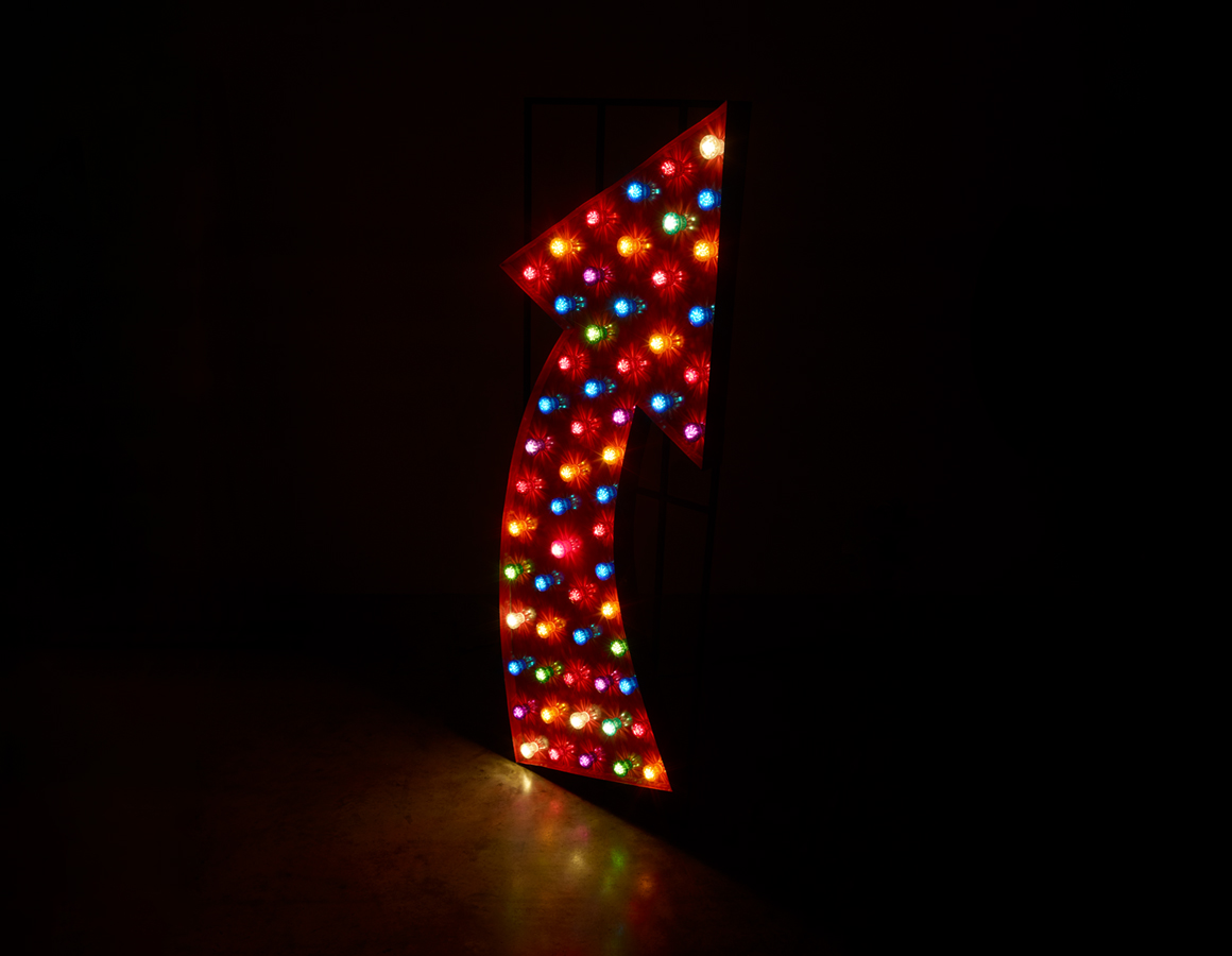 Large Red Arrow with cabochon bulb illumination, mounted on rear box section frame.
