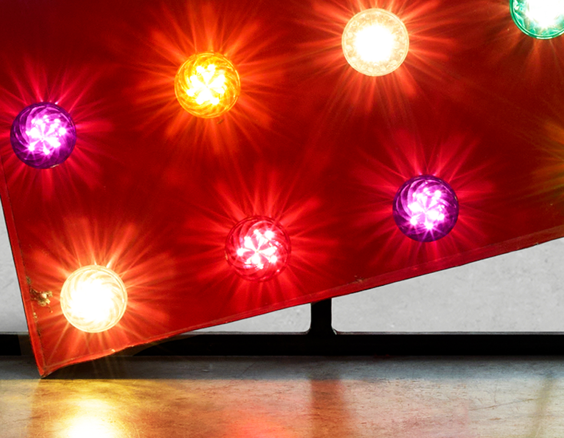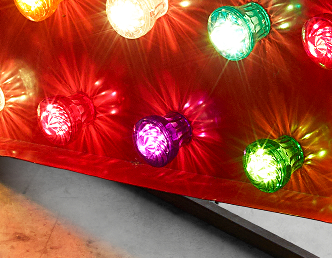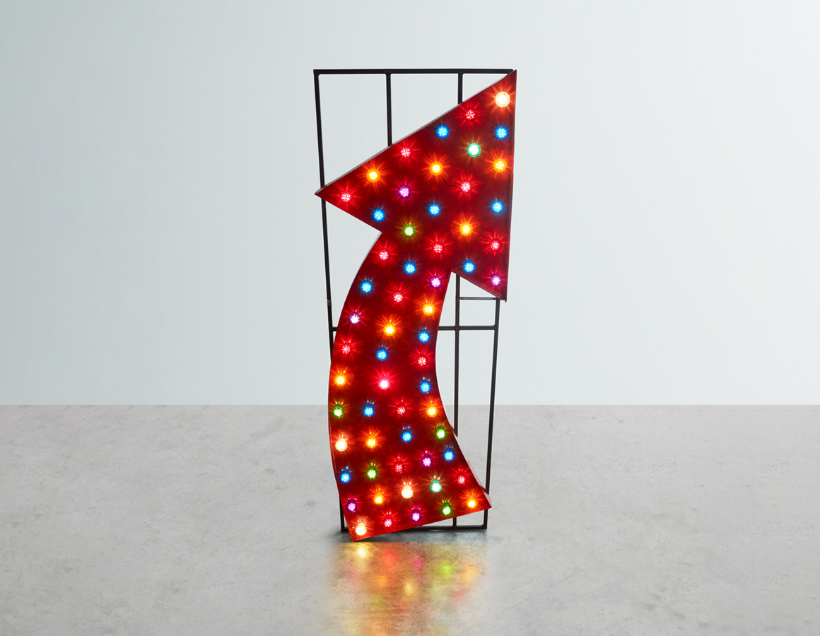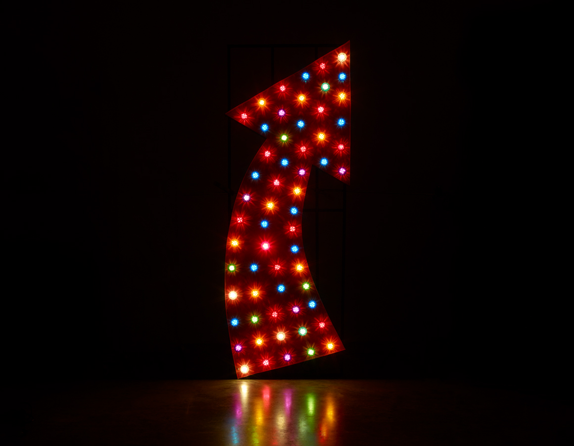 Large Red Arrow with cabochon bulb illumination, mounted on rear box section frame.