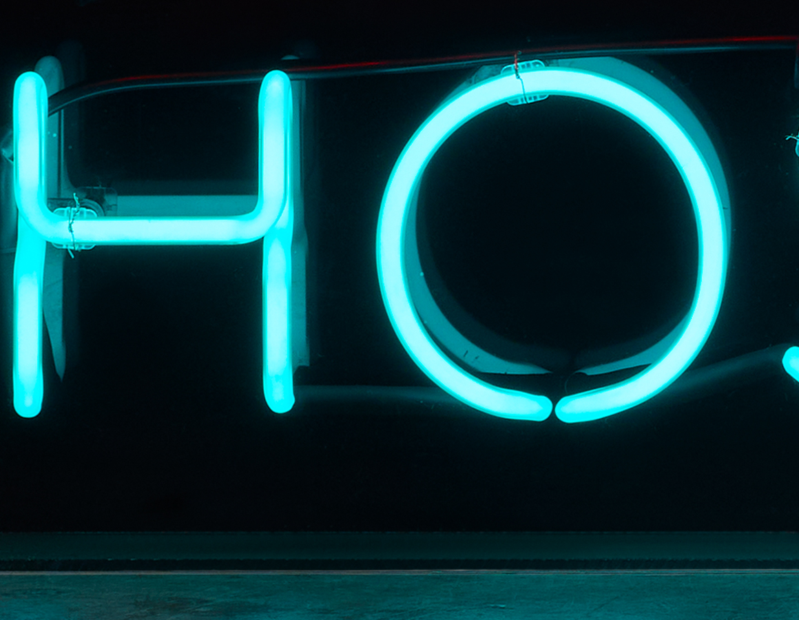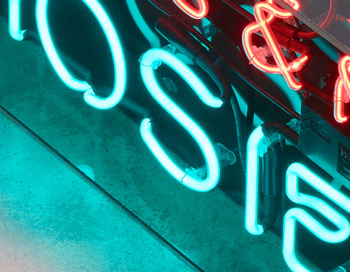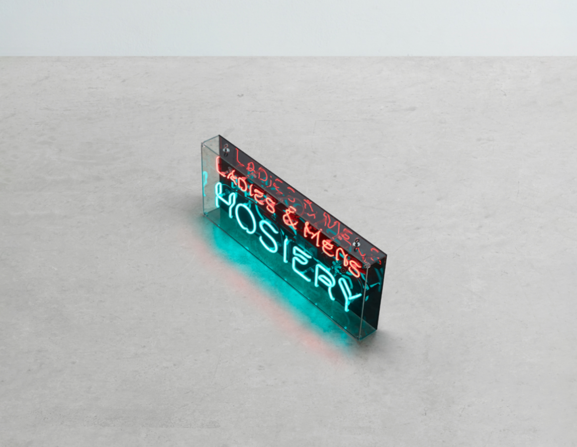 Ladies & Mens Hosiery clear red and turquoise neon mounted within an acrylic case
