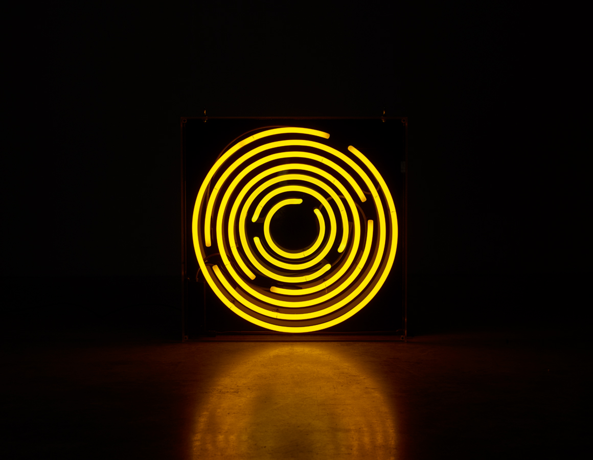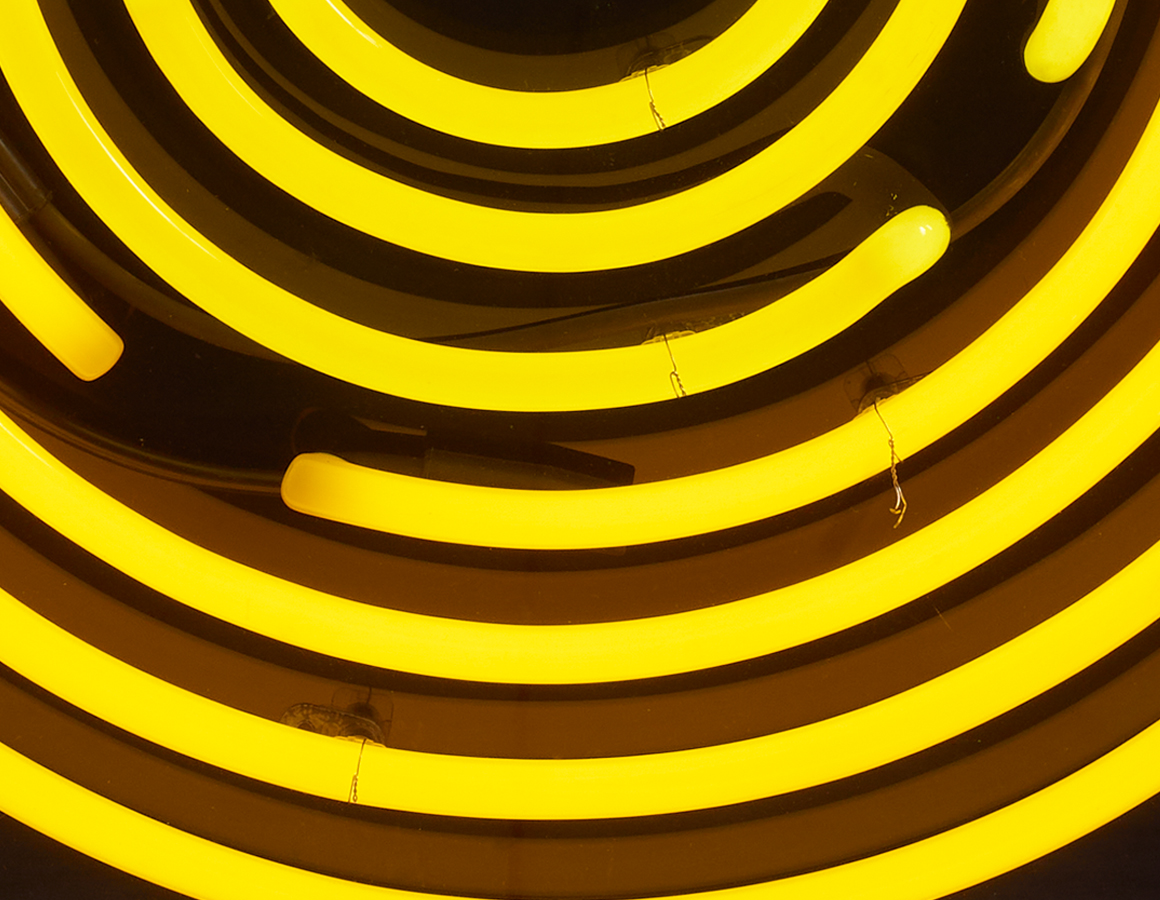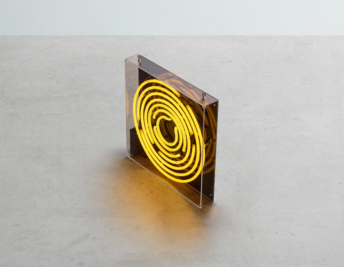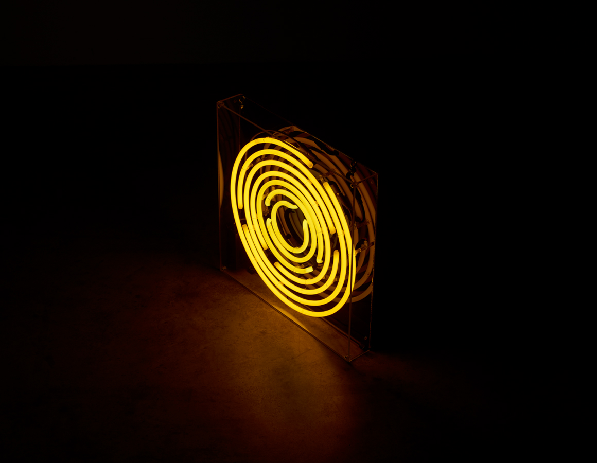 Maze yellow rings mounted within an acrylic case