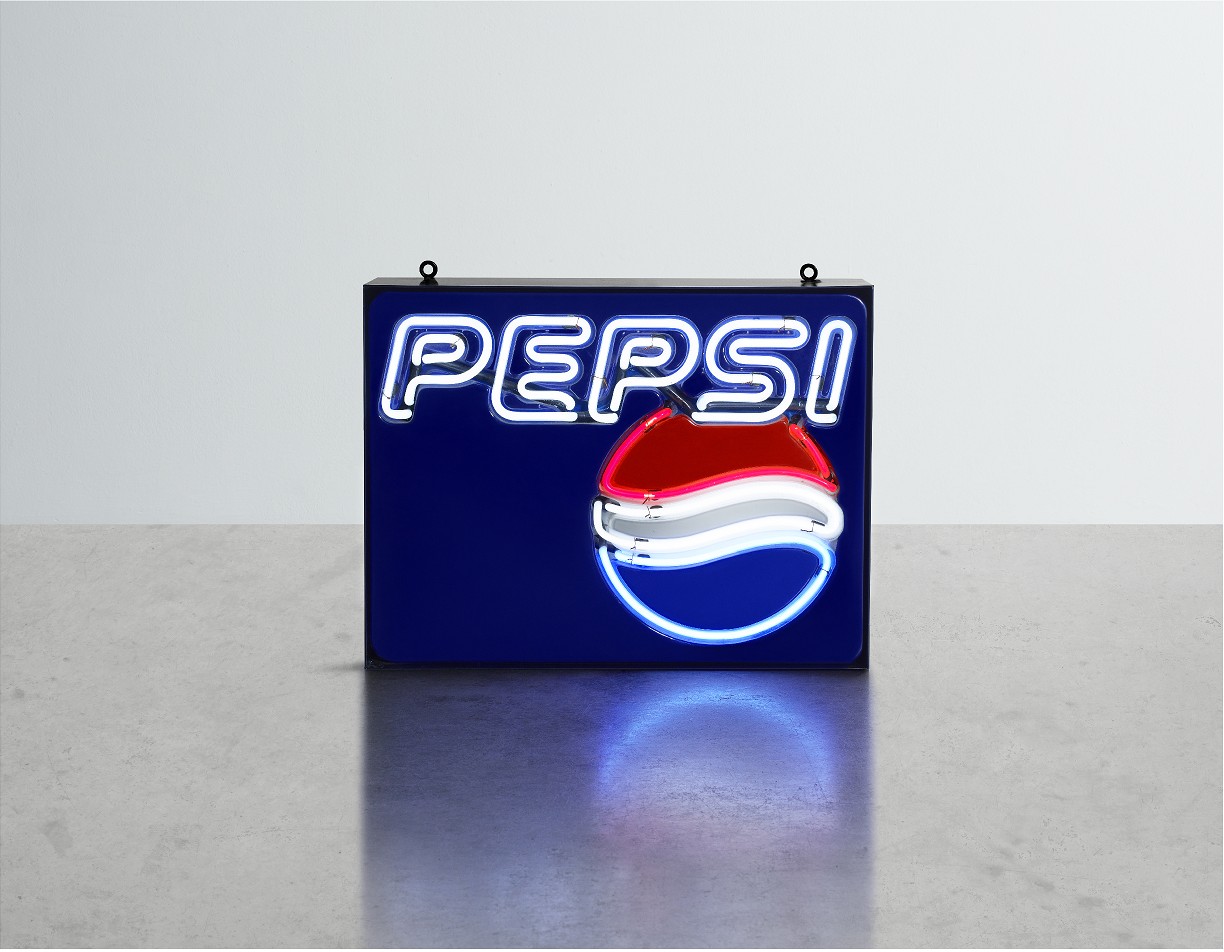 Exposed pepsi neon mounted within a black aluminium backing tray