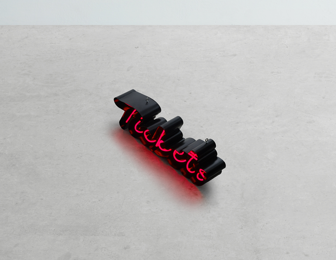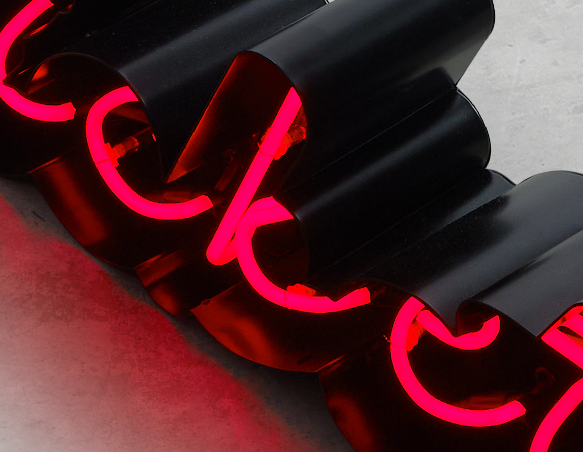 exposed ruby red neon letters mounted within black aluminium trough letters